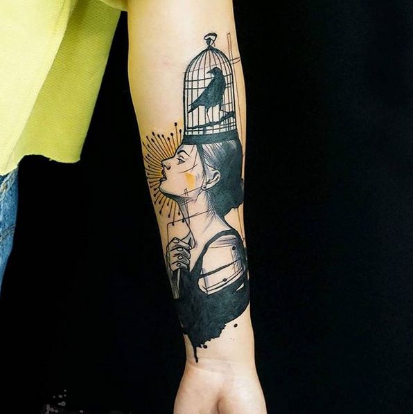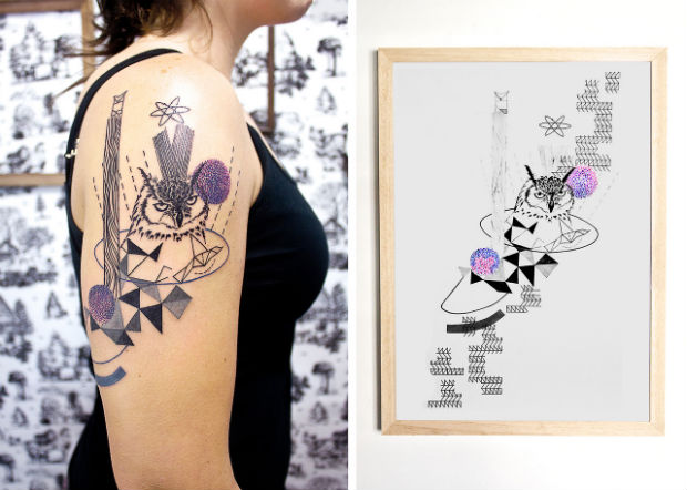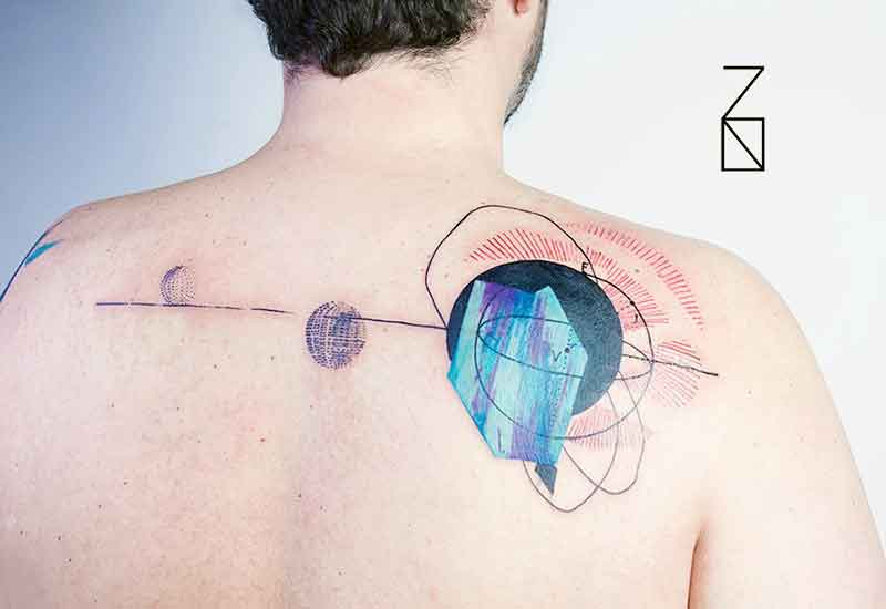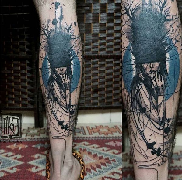 Artem Korobov é um tatuador russo-israelense que vive em Tel Aviv (Israel), e conta com um com um estilo muito próprio: sua arte utiliza a sobreposição de vários elementos como em uma colagem digital. Abstratos, cores, recortes, escritas e negativos são alguns dos elementos utilizados por ele em suas incríveis obras. Algumas são completamente abstratas, mas em sua maioria apresentam um elemento central marcante dentro de uma composição inusual.