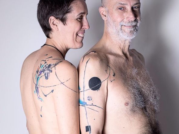 O Kizun é um coletivo de arte formado por dois artistas argentinos, Valeria e Pablo. Eles trabalham juntos fazendo arte sobre diferentes suportes – a pele é o principal deles –, resultando em obras minimalistas, abstratas, geométricas e surreais.